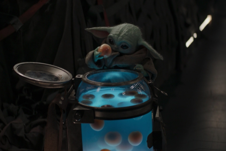 문제의 장면은 베이비 요다가 그 외계인 여성이 안 보는 사이에 유리병에서 알을 꺼내 먹어버리는 장면이다. 평소 귀여운 행동을 하고 철이 없는 캐릭터라고는 하지만 지능을 가진 여성이 소중하게 운반하고 있는 자신의 난자를 몰래 먹어버리는 장면은 솔직히 좀 충격적이었다.