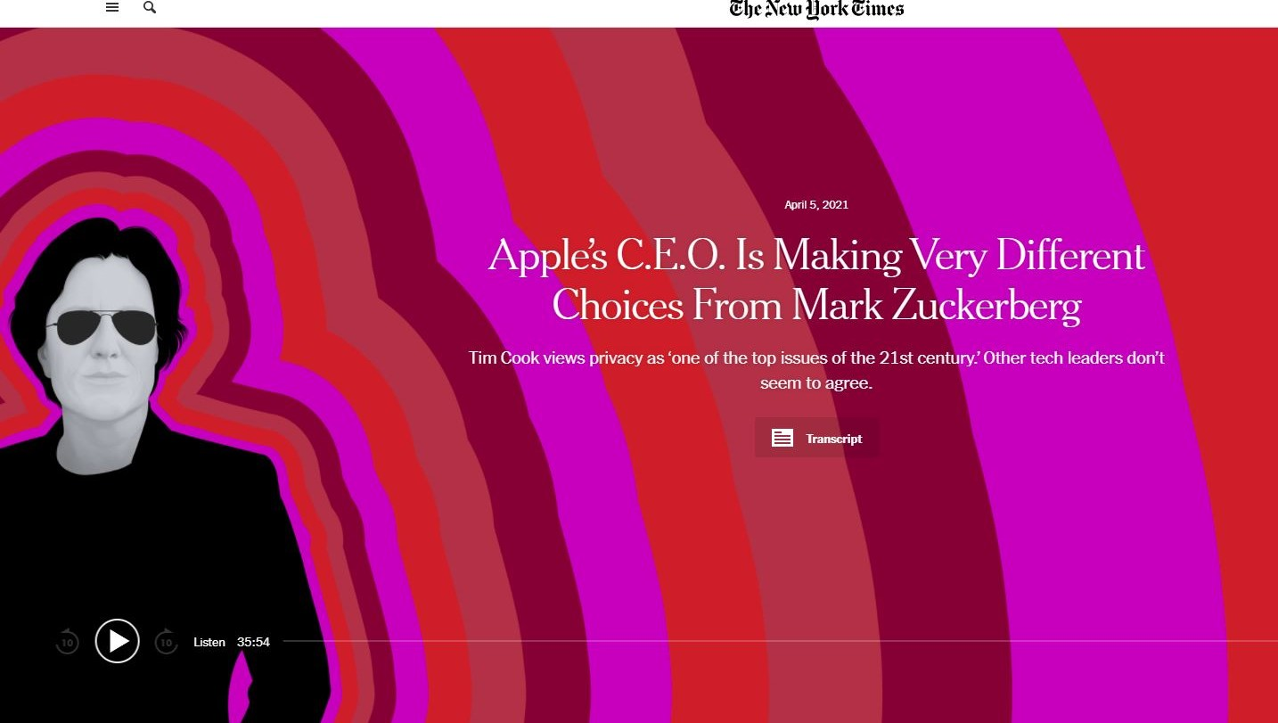 애플의 CEO 팀 쿡은 지난 5일 뉴욕타임스의 팟캐스트 스웨이(Sway)에 등장해서 진행자인 카라 스위셔와 대화를 나눴다. 이 자리에서 스위셔는 누구나 궁금해하는 질문 하나를 단도직입적으로 던졌다.