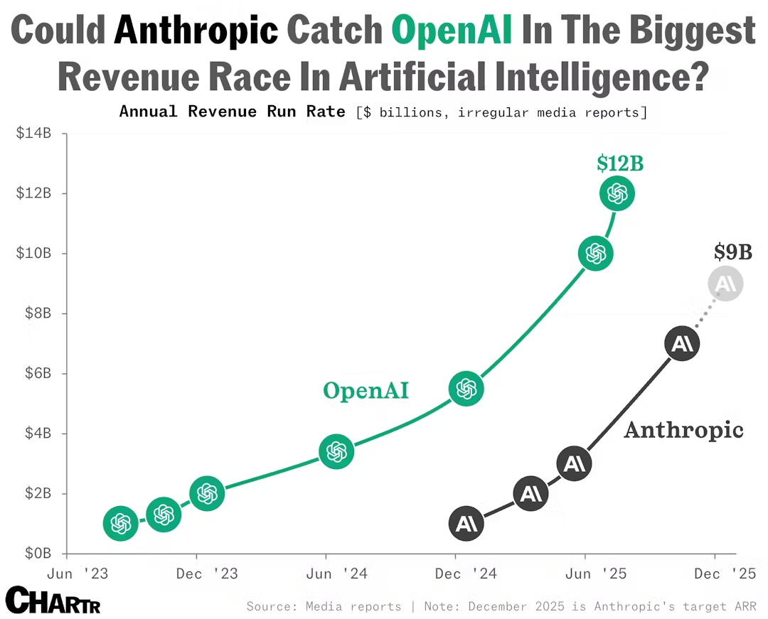 앤트로픽 vs 오픈AI, 수익 전쟁 본격화…260억 달러 목표 vs 120억 달러