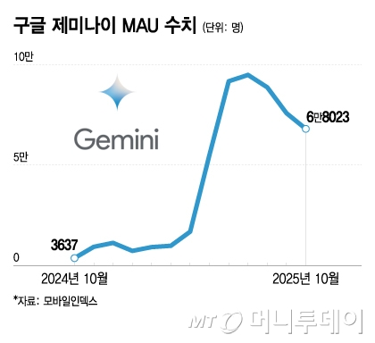 "1년 무료"에도 외면받는 제미나이…한국 이용자 4개월 연속 감소