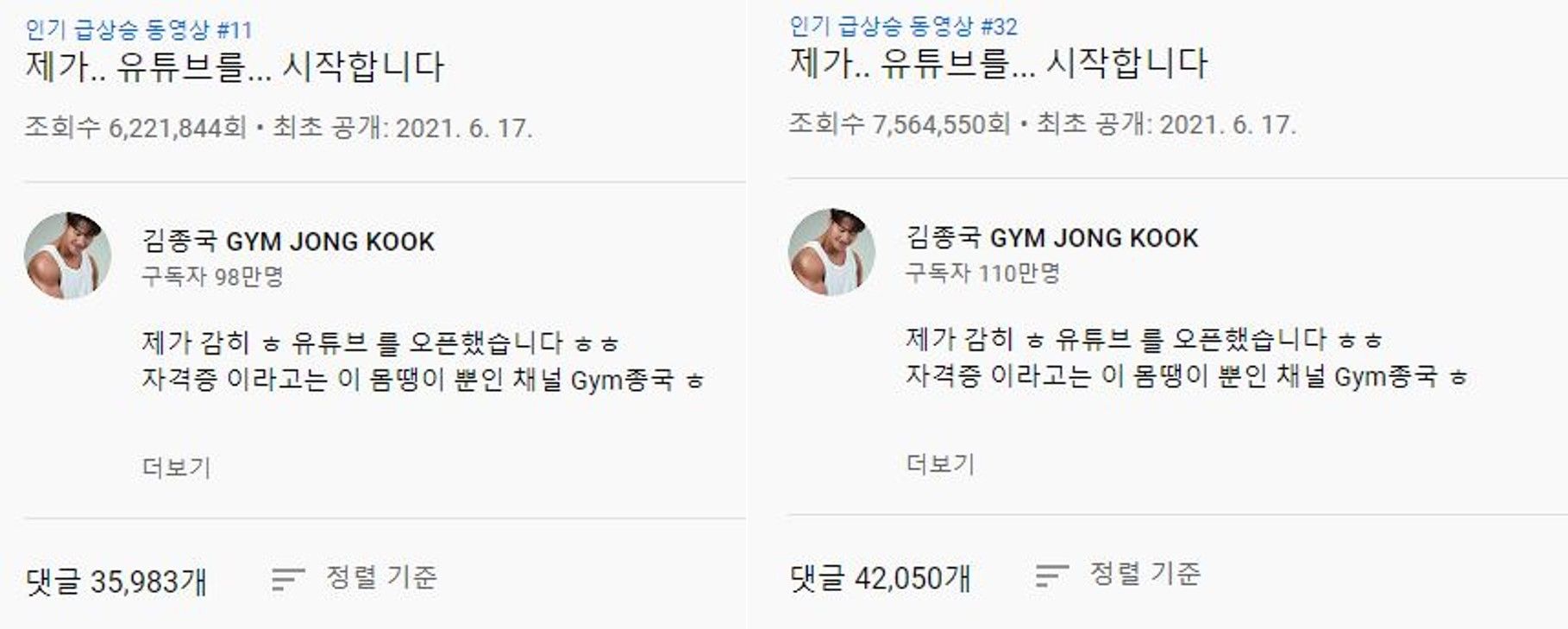 유튜브 채널 열자마자 30분만에 구독자가 10만명을 넘어서더니,