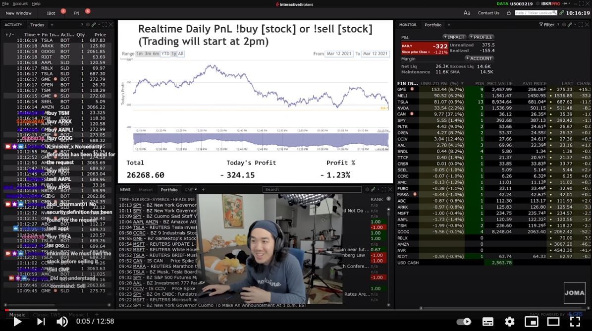 2만5,000달러를 이체한 계좌를 공개하고 구독자들과 실시간 주식거래 놀이를 했다.