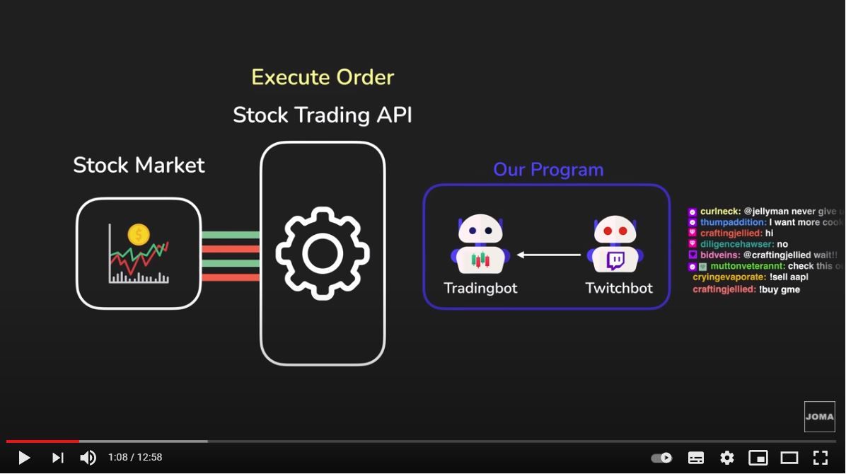 핵심은 (트위치) 구독자들의 주식주문을 자동으로 인지하고 주식거래까지 자동으로 실행하는 프로그램(bot)을 만드는 일이다.