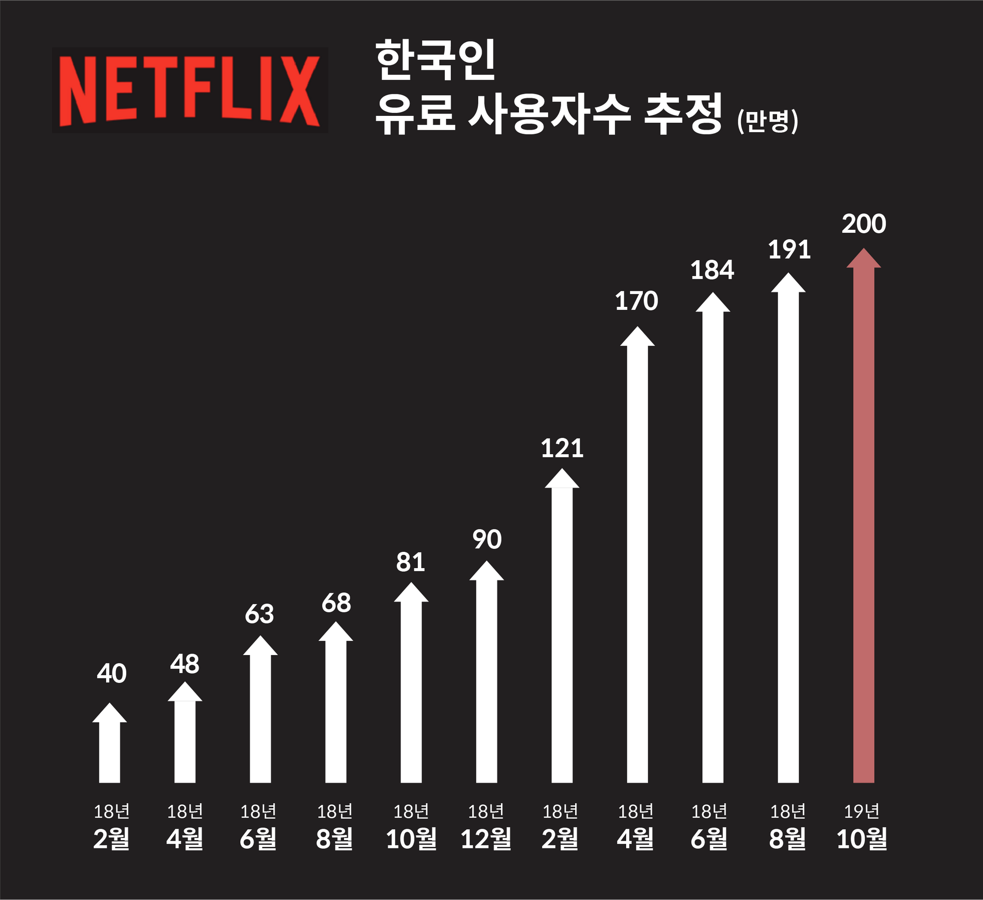 국내 가입자수가 200만명을 넘어섰다는데, 월정액을 꼬박꼬박 내는 사람들이다. 이용자중에 적극적인 선도그룹이며 그 자체로도 유의미하며 향후 확장성도 높다고 본다. 물론 이용자수가 훨씬 많은 국내 OTT 서비스가 있기는 하지만 사실 그건 통신사의 번들링(Bundling)에 의해 만들어진 숫자다. 부풀려진 측면이 있다.