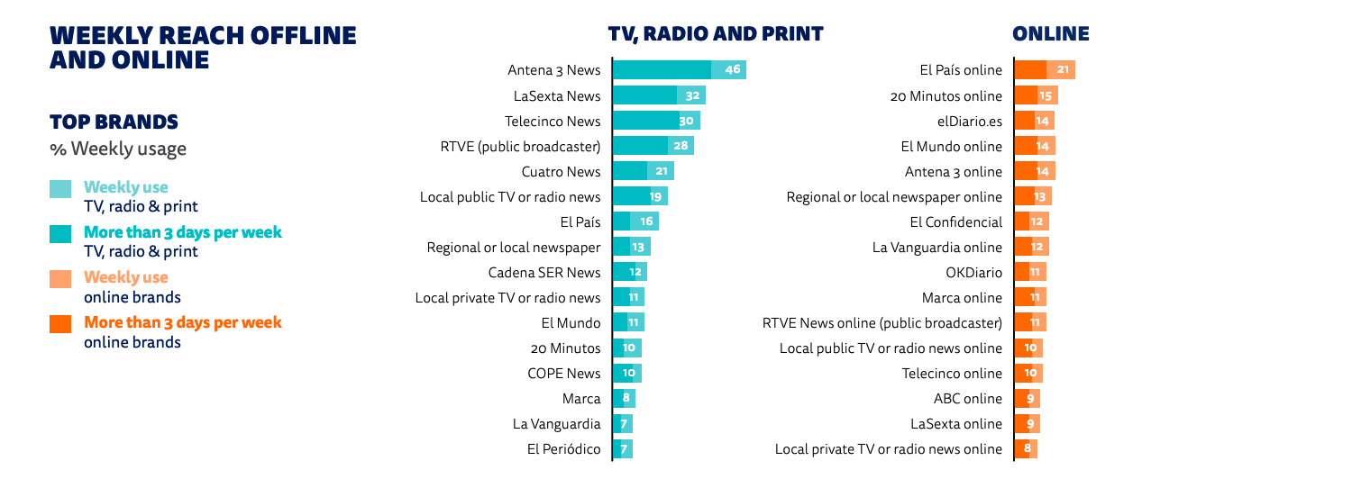 한국과 스페인의 언론시장은 유사한 점이 적지 않습니다. 뉴스 전반에 대한 신뢰도가 낮은 편(한국 38위, 스페인 33위)이고, 온라인 뉴스 지불 경험(한국 13%, 스페인 12%)도 거의 비슷합니다. 인구는 500만 명 정도밖에 차이가 나지 않고요, 전국민 인터넷 사용률도 90%를 넘어설 만큼 상당히 높은 편입니다. 한편으로는 한국 관광객들이 가장 많이 찾는 유럽 국가 중 하나이기도 하죠.