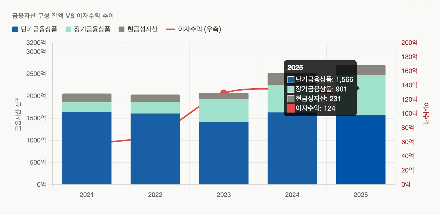 - ② 이자수익(단기금융상품 1,500억+ 운용)