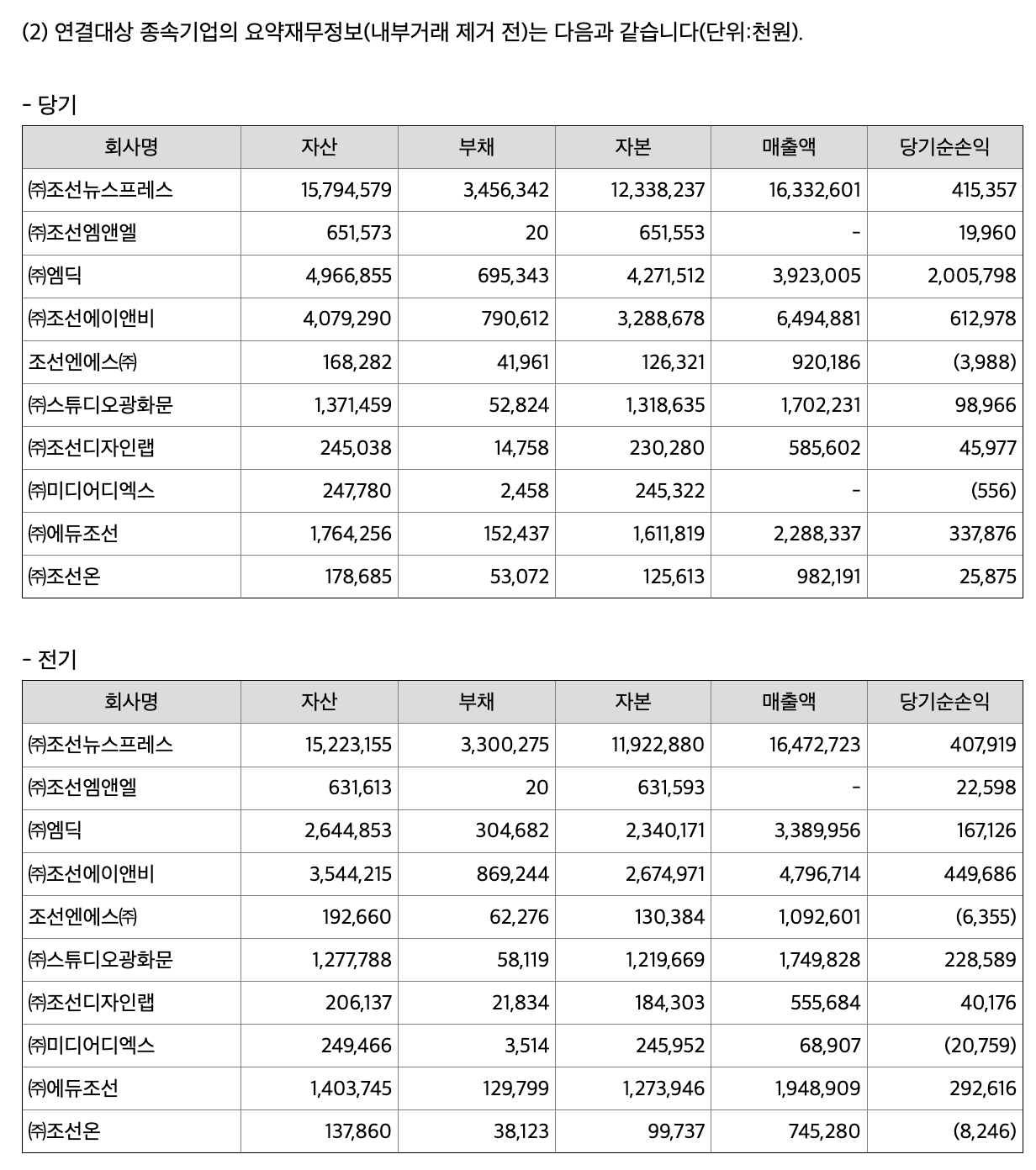 회계상 조선일보 본체는 '신문', 성장 산업 모두 자회사로