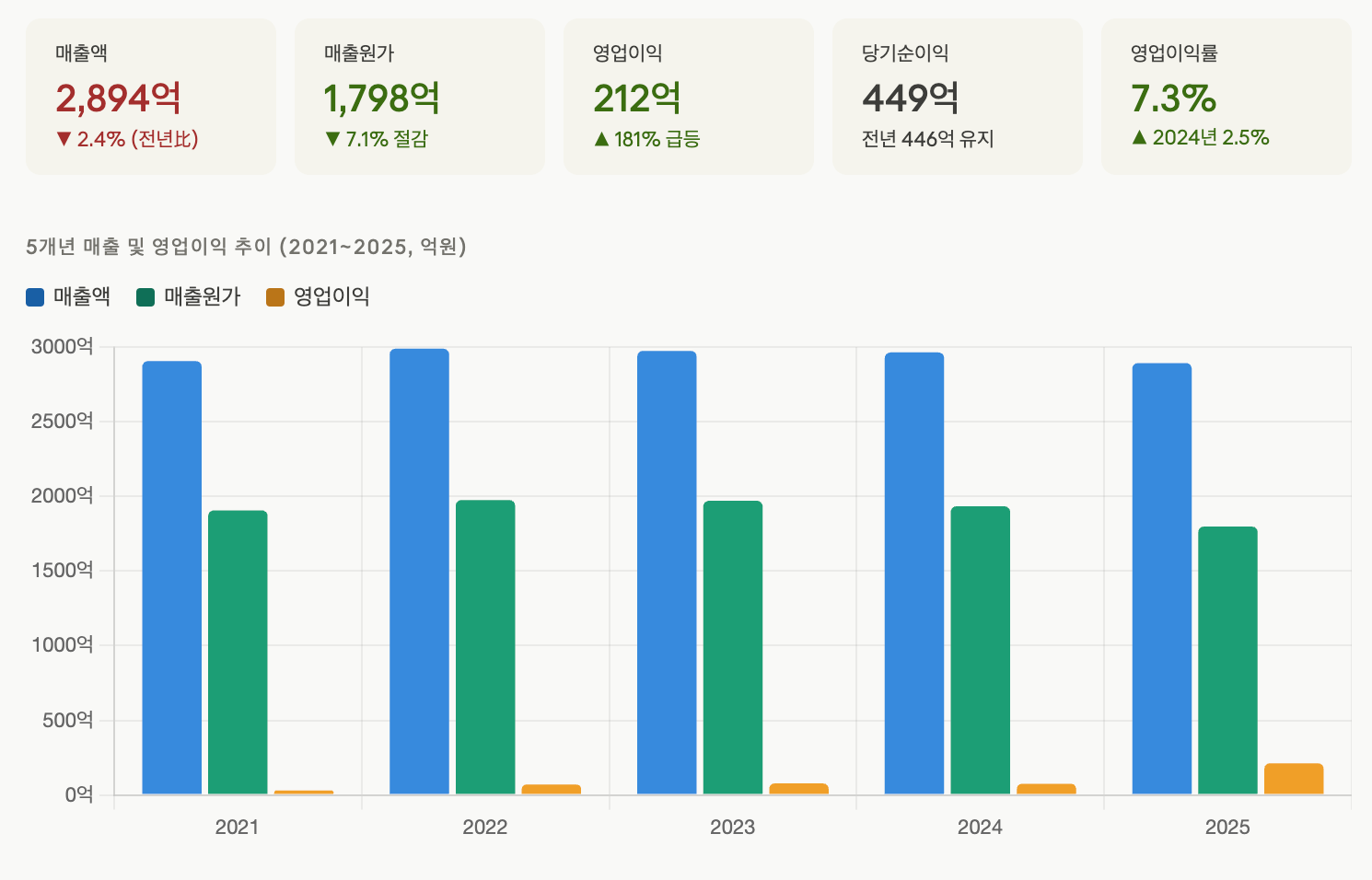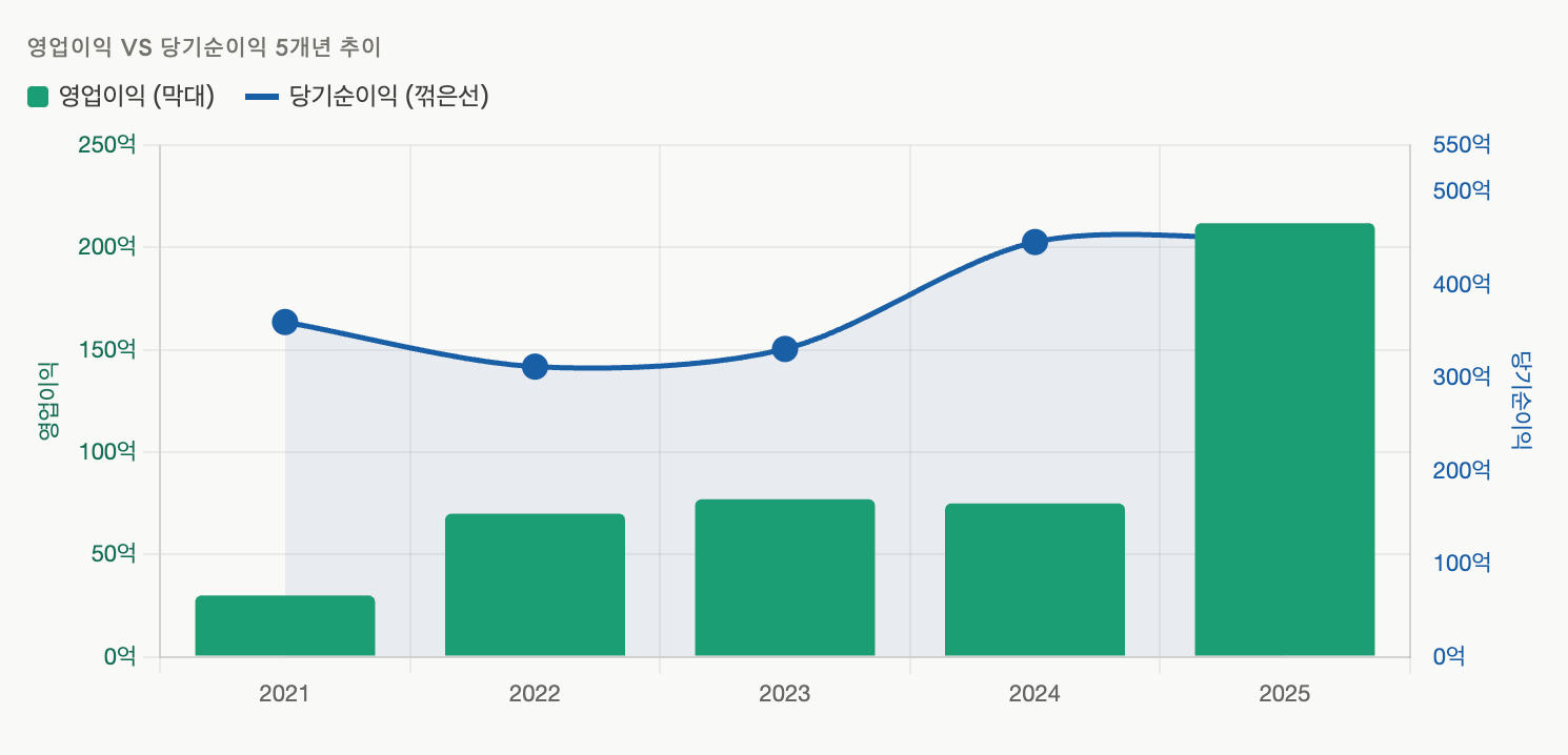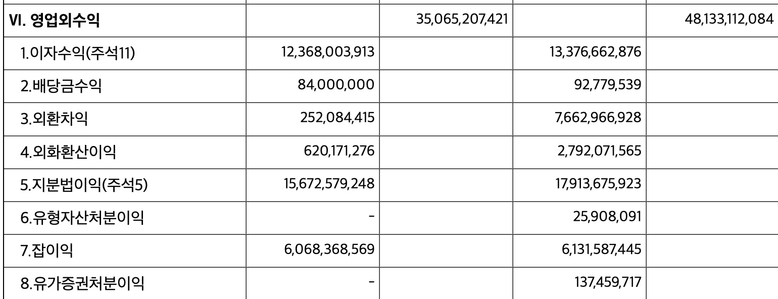 등입니다. 2024~25년 순이익이 높아진 건 이자수익 급증(환율·금리 효과)과 지분법이익 회복 덕분입니다. 영업이익 자체가 역대급이 된 2025년도 순이익은 전년과 비슷한데, 이는 영업 외 수익이 오히려 줄었기 때문입니다.