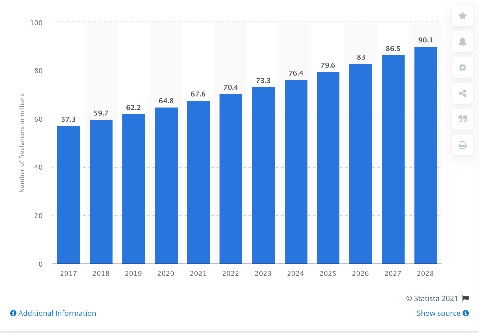 국내와 달리 미국은 프리랜서 시장이 상당히 큰 편이죠. 기고가(contributor)로 활동하며 유수의 언론들에 기고하는 이들도 상당합니다. 최근 통계를 보면, 미국에만 프리랜서의 수가 6200만명에 이른다고 합니다. 우리의 인구를 넘어서는 수준입니다. 물론 이 규모 안에는 여러 유형의 프리랜서들이 포함돼 있을 것이고요. 오로지 글과 콘텐츠로 프리랜서를 하는 노동자의 수가 얼마나 될지는 정확히 제시하기는 어려울 것 같네요.